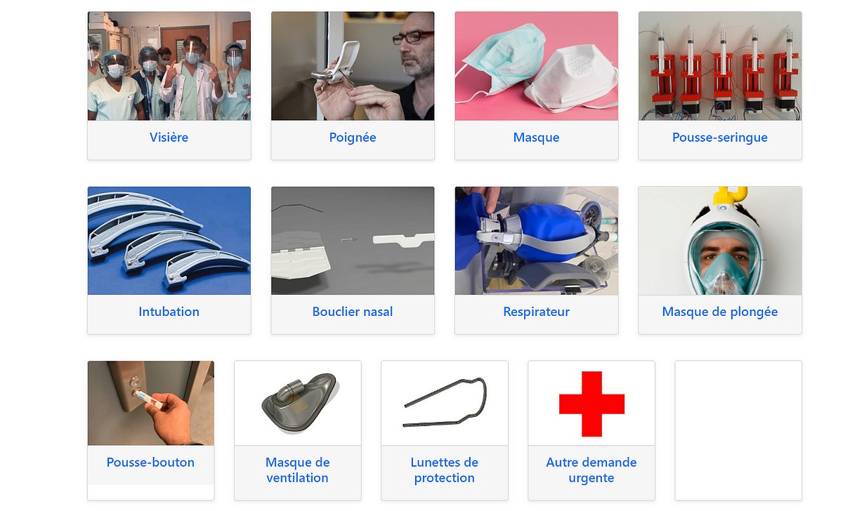 Ce projet est complété par l’ouverture d’un site web « 3D COVID » (covid3d.org) destiné aux soignants. Il recense leurs besoins et leur propose de produire rapidement des dispositifs à la demande. Des groupes ont été constitués pour se focaliser sur les dispositifs complexes d’importance critique. Cela concerne les valves, le matériel d’intubation, les respirateurs, les pousse-seringues et les masques afin de développer des prototypes en lien avec les grands industriels français et commencer la production le plus rapidement possible.