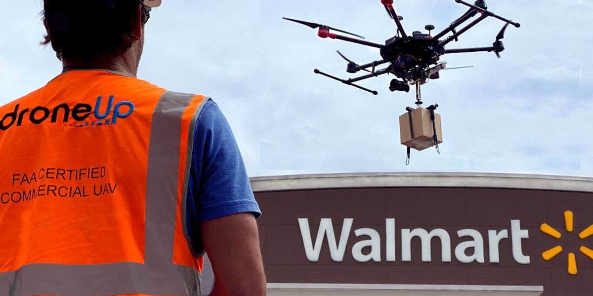 En juin dernier, Walmart a investi dans DroneUp, un fournisseur de services commerciaux de drones à l’échelle américaine qui dispose d’une dérogation fédérale pour autoriser les vols de livraison au-dessus des personnes et des véhicules en mouvement.