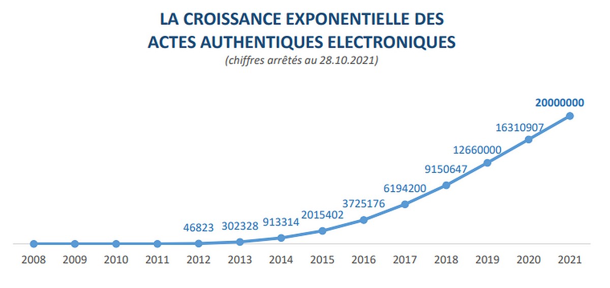 Le premier Acte authentique électronique (AAE) a été signé il y a 13 ans, le 28 octobre 2008. Le premier million d’AAE avait été atteint en février 2015. Le 10 millionième AAE avait été franchi le 9 avril 2019. Les actes sont conservés pendant 75 ans au Micen. Ils seront ensuite versés dans les archives publiques où, à l’instar des actes en format papier, ils ont vocation à être conservés sans limite de durée.